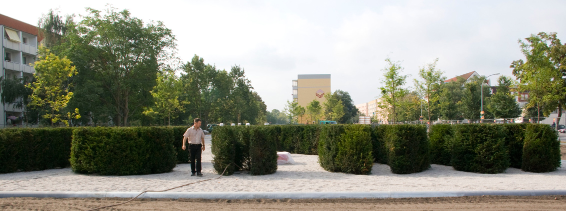 Die Aufgabe der Landschaftsarchitekten Beissert und Hengge war, eine „grüne“ Zwischennutzung für zehn bis zwanzig Jahre zu planen. Inhaltliche Vorgaben gab es dabei nicht, außer einer Budgetvorkalkulation und der Absicht, Freiraumdefiziten im angrenzenden Wohngebiet Mittelstadt entgegenzuwirken und dessen Außenwirkung zu verbessern. Der Projektstandort liegt direkt an der von Süden auf das Oranienburger Schloss zuführenden Hauptachse der Stadt, der Berliner Straße.